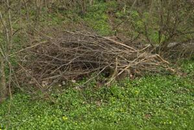 Was tun diese Asthaufen in den Büschen und Hecken? Sie sind Nährstoffreserven und wertvolle Lebensräume für verschiedene Tier-, Insekten- und Pilzarten. In solchen Haufen finden Blindschleichen, Igel, Siebenschläfer, Pilze und Waldschmetterlinge Unterschlupf. Aber auch Bodenbrüter wie Zaunkönig, Rotkehlchen finden hier Nistmöglichkeiten. Durch den Verrottungsprozess des Holzes herrscht in einem grösseren Haufen ein wärmeres Mikroklima das besonders wechselwarmen Tieren zugutekommt und für die Ueberwinterung dient. Und am Ende des Prozesses ist es dann Humus! Den wir wieder zu unserer Nahrungsproduktion brauchen.