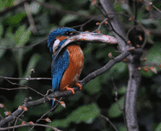 Was für ein Highlight heute am Loch 2. Auf einem Stein am Wasser sitzt ein Eisvogel! Das türkisblaue Rückengefieder und der rostrote Bauch machen ihn unverkennbar. Männchen und Weibchen unterscheiden sich nur an der Schnabelunterseite, sie ist orange, er schwarz. Es muss sich um einen Vogel auf Wanderschaft, also auf Erkundungsflug handeln. An unseren Teichen auf dem Golfplatz wird er bestimmt nicht brüten können. Er bevorzugt für seinen Röhrenbau mit Kessel (40-80cm) eine Steilwand aus Lehm und festem Sand. Auf einer Warte sitzend beobachtet er die Fische, welche bis 7 cm lang sein können, taucht blitzschnell mit angelegten Flügeln, fängt den Fisch mit offenen Augen, und steigt mit Flügelschlag an die Wasseroberfläche und auf die Warte zurück. Das Ganze dauert 2-3 Sekunden. Der Vogel ist heute selten zu sehen, nicht zuletzt machen ihm die Uferverbauungen zu schaffen.