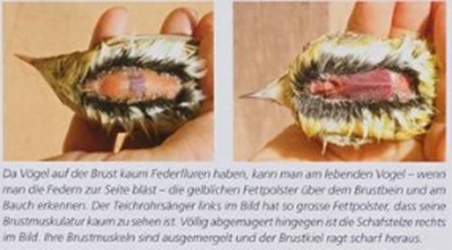 Für den Zug wird das Federkleid erneuert (Mauser), denn nur mit einem intakten Federkleid lässt es sich gut fliegen. Vögel brauchen für ihre Wanderung Treibstoffreserven sie legen sich ein Fettpolster zu. Das grosse Angebot von Beeren und Früchten also kohlenhydratreiche Kost und das häufigere fressen hilft dem Vogel die Reserven bis zum doppelten Gewicht aufzubauen.(Bericht 2008) Auch der Stoffwechsel stellt sich um während der Zugzeit, sodass der Vogel während des Fluges bis zu 95% der benötigten Energie aus dem Fett beziehen kann. Er braucht also vorerst nicht für die Nahrungssuche zu landen
