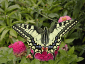 Der Schwalbenschwanz ist auch als Rüebliraupe bekannt, gerne findet man sie auch am Fenchelkraut (alle welche einen Gemüsegarten haben kennen die Raupe). In der Literatur findet man aber auch die kleine Bibernelle und die wilde Möhre als Futterpflanze angegeben. Der Schmetterling ist ein Binnenwanderer. Er ist als guter Flieger ausser in Gärten auch in Wiesen, an Waldrändern und in Feuchtgebieten anzutreffen.