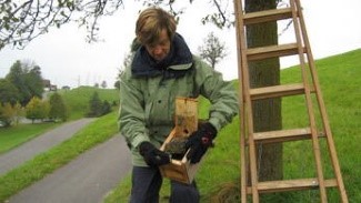 Wir entfernen das alte Nest aus den Nistkästen so dass die Vögel den nächsten Frühling die Behausung frisch erstellen können.