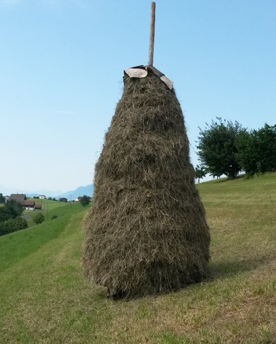 Tristen: Seit einiger Zeit steht am Aufgang zu Loch 1 ein Wild Heu Stock. Tristen sind Elemente der traditionellen Kulturlandschaft. Für eine Triste, welche bis zum Abbau 2 Meter hoch sein soll, muss anfänglich 3 m hoch erstellt werden, da sich das Heu über den Winter verdichtet. Die Triste soll trockenstehen und wird um eine Tristen Latte aufgeschichtet und durch Stampfen gepresst. Am Rand der Triste wird das überschüssige Heu mit einem Rechen abgestreift, dadurch richten sich die äusseren Gräser nach unten, und das Heu bleibt auch bei Regenwetter trocken. Zum abdichten der Spitze kann ein Rasenziegel (mit Loch und dem Gras nach unten) verwendet werden. Dieser soll nachrutschen können, wenn sich die Triste setzt.